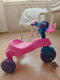 Triciclo per bambini rosa, viola e blu in ottime condizioni e mai usato. Dotato di cestino e adesivi da incollare per renderlo ancora più accattivante. Adatto a bambini fino ai 5 anni. 60 × 42 cm