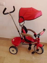 Triciclo per bimbo modello COLIBRINO; sediolino ergonomico girevole a 360 gradi, cappottina, coprisedile e maniglia di spinta.