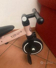 Triciclo adatto a bambini dai 24 mesi ai 3 anni max 30 kg di colore rosa e nero; regolazione del manubrio e della sella, pedale rimovibile, usato pochissime volte