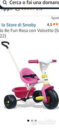 vendo triciclo Smoby in buone condizioni con asta removibile , adatto a bimbi da 15mesi fino a 3 anni.