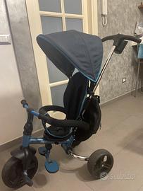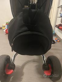 triciclo per bambini, può essere trasportato ma include anche pedali, in modo tale che il bambino si muova da solo, e zaino e schienale