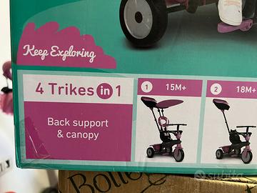 SMARTRIKE 4 IN 1 TRICICLO PER BAMBINI DAI 15 MESI CON MANIGLIONE DIREZIONALE TOUCH STEERING E EQUIPAGGIAMENTO DI SICUREZZA – OTTIME CONDIZIONI. Consegna a mano Rimini o Dogana (RSM). Sì consegna pulito. Scatola originale disponibile.