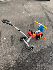TRICICLO U- GO 2IN1: Triciclo con maniglione telescopico dal design sportivo e moderno, dotato di comodo sellino, resistente telaio in metallo e capiente cestello portaoggetti; con 2 modalità d'utilizzo MANIGLIONE TELESCOPICO: Il manico telescopico è regolabile a tre posizioni in base all'altezza dell'adulto, per guidare il bambino nelle sue prime esperienze SPINGI E VAI: La cintura di sicurezza e il comodo maniglione estensibile permettono all'adulto di spingere il triciclo e guidare comodamente il bambino PEDALATA LIBERA: Rimuovendo il maniglione, il bambino può pedalare liberamente e divertirsi ad esplorare intorno a sé SICURO: Il triciclo Chicco U- GO è dotato di cinture di sicurezza, pedali con sistema di bloccaggio on/ off e blocco sterzo con sistema di chiusura, che garantiscono un'elevata sicurezza al bambino RUOTE IN GOMMA: U- GO ha una buona presa su tutte le superfici ed è comodo da guidare grazie alle ruote in gomma morbida antiforatura