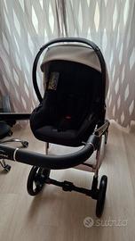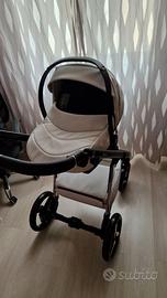 Trio in pelle bianca, facilissimo da pulire con interni neri che quindi non si sporcano. Nuovissimo. Accessori compresi.