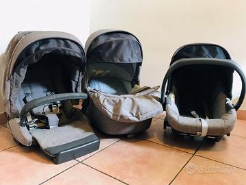 Trio aptica inglesinagrigio in ottime condizioni ,molto facile da utilizzare e confortevole composto da culla navicella,passeggino,seggiolino auto,stand up