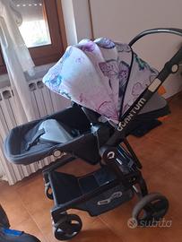 trio be cool , completo di ovetto , navicella, passeggino. doppio colore bimbo/a grigio/farfalle.