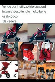 Vendo urgentemente per trasloco trio intensa Concord rosso con carrozzina passeggino e chicchino a 99 euro