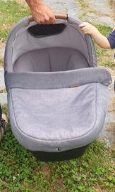 Trio Bebè Confort: ovetto con tendina parasole + navicella omologata per auto con cinture di sicurezza + passeggino + telo pioggia fissabile con cerniera. Colore grigio con inserti in ecopelle. All terrain dotato di grandi ruote posteriori antiforatura con sospensioni e cuscinetti a sfera. Sistema di chiusura automatica senza mani, con apposito pedale. Schienale e poggiagambe reclinabili. Seduta reversibile frontestrada/frontegenitore. Tessuto sfoderabile e lavabile. Maniglione unico in ecopelle per facilità di guida. Altre foto se interessati.