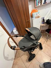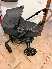 Vendo Trio Bebeconfort composto da navicella, ovetto e passeggino. Colore grigio antracite con dettagli in similpelle. Carrello con gomme grandi e ammortizzate, chiusura automatica.