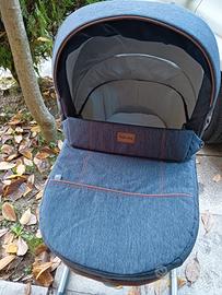 comprende navicella con supporto per la casa , passeggino completo con copertura invernale Ed ombrellino per l'estate .