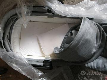Vendo trio Brevi usato ma in perfette condizioni . Colore grigio chiaro . Articoli: Passeggino, Navicella, cocchino , supporto per fissare il cocchino in macchina e borsa cordinata
