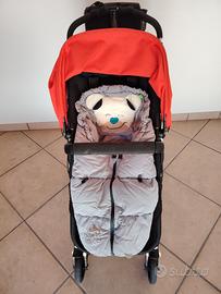 Trio completo: passeggino, navetta, ovetto con fissaggio isofix, una capottina arancione ed una azzurra, set sacchi invernali copri gambe, vari accessori.