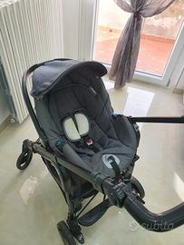 Trio cam, completo di materassino e cuscino, borsa per il cambio e fasciatoio portatile, e libretto di istruzioni… ovviamente usato, quindi la struttura un po’ graffiata, e manca parte della plastica protettiva sul marchio del manico, ma per il resto ancora in perfetto stato
