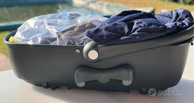 omologata per il trasporto in auto (0-10 kg),molto ampia, dotata di aggancio/sgancio rapido Quicky System, con maniglione antiribaltamento, schienale reclinabile in 3 posizioni, materassino, capottina, fondo aerato, borsa.