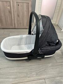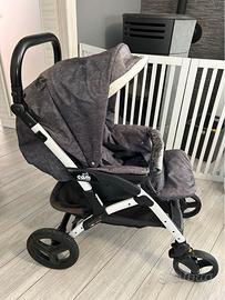 Trio Dinamico Up CAM completo con tessuto grigio: -telaio bianco e nero -seduta passeggino reclinabile con cappottina -navicella -ovetto Posso consegnare a Bergamo/Val Seriana/Milano Trio Dinamico Up della Cam è un sistema modulare per garantire la sicurezza e la comodità del bambino dalla nascita fino ai 4 anni. Il telaio si chiude con una sola mano anche con la seduta del passeggino inserita (sia fronte genitore che fronte strada). La navicella grazie al sistema Quick System si aggancia/sgancia con semplicità dal telaio. Ampia e confortevole per le passeggiate con il neonato fin dalla nascita (omologata fino a 10 kg), la navicella è dotata di uno schienale reclinabile in 3 posizioni, un materassino confortevole, capottina integrata richiudibile, base con fondo aerato e un comodo maniglione ergonomico antiribaltamento vera pelle sellata a mano. Il Passeggino ultra compatto e funzionale ha il maniglione unito che può essere regolato in più posizioni. La guida fluida e comoda è garantita dalle ruote posteriori ad ampio raggio e da quelle anteriori piroettanti e bloccabili, ammortizzate con cuscinetti a sfera in metallo, freno sincronizzato con sistema on/off. Lo schienale è reclinabile fino alla posizione della nanna ed è dotato di cintura di sicurezza a 5 punti . Cestino portatutto. Dimensioni: Aperto: 103 x 57 x 96 cm Chiuso: 90 x 27 x 57 cm Peso: 8,7 kg Ovetto omologato per il Gruppo 0+ (0-13kg) è una comoda culla per il trasporto del bebè in auto. Le protezioni laterali, il riduttore anatomico con sostegno lombare e gli spallacci imbottiti oltre a garantire la sicurezza del bambino lo avvolgono in un morbido abbraccio.