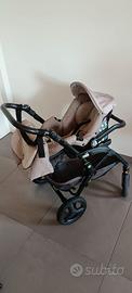 Trio della CAM modello Dinamico Up completo di base con ruote grandi, passeggino, navicella, ovetto, borsa coordinata. Insieme vendo anche piedistallo da tenere in casa per agganciare la navicella. Telaio nero, ruote ammortizzate, quelle dietro sono gonfiabili e si possono staccare. Tessuto sfoderabile e lavabile, bicolore beige e tortora.
