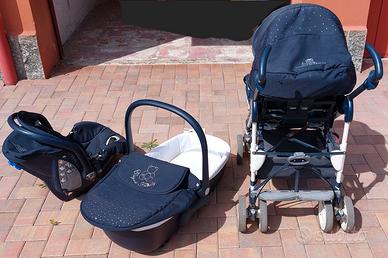 vendo trio CAM colore blu scuro completo di passeggino, navicella e seggiolino auto.