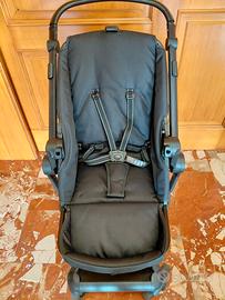 Ampia carrozzina dotata di sistema di aggancio e sgancio rapido con maniglione antiribaltamento