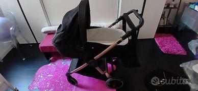 Trio Cam Techno colore nero e oro rosa completo di tutti gli accessori. Telaio color oro rosa e nero. Ovetto con tettuccio parasole con riga oro rosa reclinabile e smontabile,riduttore imbottito,imbottiture di protezione su bretelle Navicella decorata con riga oro rosa e 3 cuoricini sul retro,possibilita' di sollevare parte alta x favorire aerazione,dotata di materassino e un secondo materassino in omaggio,tettuccio reclinabile e copertura anteriore con bottoni per rialzi parasole,borsetta portachiavi nera decorata con orsetto color oro rosa Passeggino fronte genitori e fronte mondo con riduttore imbottito,tettuccio parasole reclinabile,sacco passeggino x inverno,telo antipioggia con bottoni metallici x fissarlo al telaio e apertura frontale con velcro. Borsone nero per pannolini e accessori vari Istruzioni cartacee complete disponibili