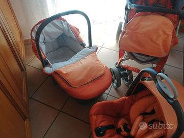 Trio composto da carrozzina ovetto e passeggino più borsa tenuti bene usati solo x un bambino