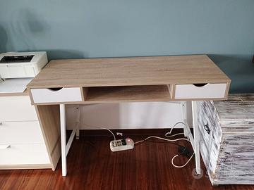 Vendo cassettiera con 3 cassetti,più una cassettiera più stretta e alta con 5 cassetti,più scrivania e sedia,colore bianco e legno chiaro