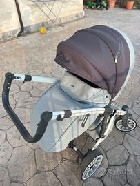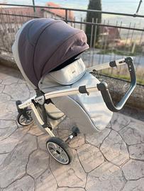 Trio Anex sport - carrozzina, passeggino e ovetto, completo di base isofix per utilizzare l'ovetto in auto. Tutti e tre i componenti sono dotati di copri gambe. La carrozzina ha anche in dotazione il parapioggia e la rete anti insetti. Il telaio è in acciaio, molto resistente, ed è dotato di borsa portaoggetti chiusa con zip. In omaggio riduttore ovetto
