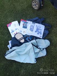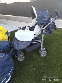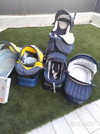 Trio chicco C1 con doppia culla e doppio ovetto per la macchina (uno blu scuro e uno jeans e giallo). Completo di tutto, anche di 2 materassini antisoffoco per la culla, di 2 plastiche antipioggia e del tappetino anti sudore per il passeggino.