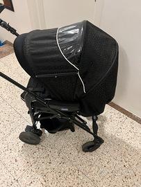 Trio chicco bianco e nero, formato da passeggino culla e ovetto completo di accessori ( riduttore, materassino, cuscino, para sole, para pioggia, retina zanzare, copriruote e sacco invernale per le gambe). Incluso set sicurezza chicco per il trasporto in culla in macchina.