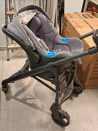 Il trio è completo di tutto: navicella per i primi mesi, ovetto auto con base e passeggino reversibile.