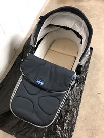 Ovetto con base per auto, passeggino con borsa e copri gambe. Retina per zanzare e copertura per pioggia. Culla trasportino con cuscino e materasso su misura.
