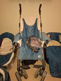 Passeggino molto usato, ma ancora in buone condizioni, ovetto e navicella usati pochissimo, in ottimo stato. Completo di tutti gli accessori: capertina, telo impermeabile, coprigambe, retina portatutto. Cedo in blocco