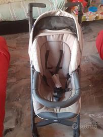 Trio completo composto da navicella con materassino, ovetto con base auto e passeggino reclinabile.