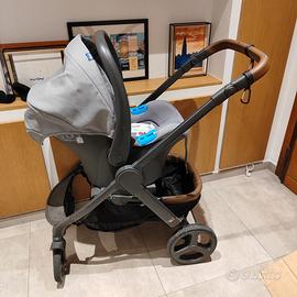 Vendo trio Chicco Style go up completo di telaio chiudibile, navicella, ovetto, base ovetto e passeggino (non in foto). La navicella e il telaio presentano qualche segno di usura. Incluso anche materassino per navicella con rivestimento traspirante. L' Ovetto Oasys 0+ è fissabile al sedile della macchina mediante base e cintura di sicurezza (omologato gruppo 0+ fino 13 kg e 12 mesi circa, nel rispetto del regolamento europeo ECE R44/04, precedente però alla norma attuale ECE R129). Presenta dispositivo anti abbandono baby care. Passeggino come nuovo usato pochissimo, è possibile montarlo sia verso mamma che strada. Inclusi copri gambe passeggino e navicella