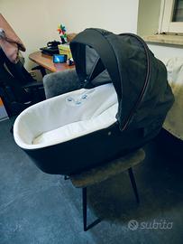 - Navicella con schienale regolabile attraverso una rotella presente sotto di essa. Completa di copertina e agganci per l'auto