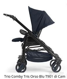 Trio comby Cam, completo di base per ovetto auto e borsa. Usato ma molto ben tenuto, ottime condizioni igieniche. Pratico e maneggevole. Manico del carrello pieghevole, adatto ad auto con cofano di piccole dimensioni. No spedizione. Ritiro presso Barcellona P. G., Messina o Falcone.