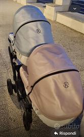 Trio completo lineare colore azzurro e rosa, telaio nero, completo di borsa coordinata azzurra, riduttore dell ovetto