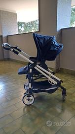 Completo di: navicella primi mesi, seggiolino auto, passeggino con modalità "fronte mamma" o "fronte strada" , parasole reclinabile, base auto per seggiolino.