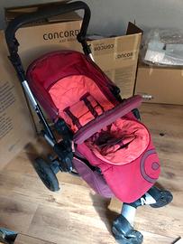 Ovetto con base isofix, navicella e passeggino con ruote utilizzabili per tutti e tre gli elementi.