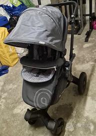 è composto dal passeggino dotato di adattatore travel SyStem. Telaio molto leggero in alluminio permette di chiudere il passeggino senza dover togliere prima l'amaca ed in entrambi le posizioni ovvero fronte strada e fronte mamma, chiuso è di dimensioni cosi piccole da poterlo riporre in autovetture di dimensioni molto ridotte come ad esempio (Una Smart), inoltre il nuovo sistema innovativo Y-FRAME asse anteriore più corto, sospensioni a ruote indipendenti con torsione centrale e le ruote dotate di cuscinetti a sfera combinano un elevata manovrabilità per offrire una guidabilità piacevole. La seduta è dotata di paragambe antivento inserito nel bracciolo, capottina allungabile per proteggere il bambino dal vento, amaca con riduttore molto comodo, regolabile in varie posizioni e reversibile sia in posizione in fronte strada o rivolto all'indietro fronte mamma.Ruote dotati di cuscinetti a sfera per offrire una guidabilità piacevole per la sua sensazione di leggerezza, telaio molto leggero in alluminio, chiuso è di dimensioni piccole.