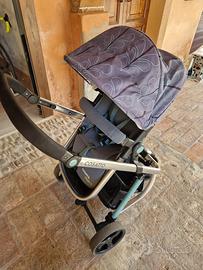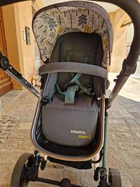Trio Cosatto usato, comprende la base, l'ovetto per la macchina usabile senza base in quanto possibile legare con la cintura di sicurezza su 3 punti, navicella completa di materassino, maniglione, copertura sia solare che per le gambe, e passeggino.