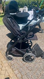 composto da passeggino, ovetto Cybex Gold serie Aton (seggiolino auto dalla nascita ai 12 mesi) e navicella - colore nero. Ruole del passeggino ALL TERRAIN funzionali anche sui terreni piu’ accidentati. Il passeggino e’ dotato di un capiente cestello portaoggetti e ampia cappottin solare.