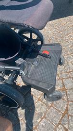 Manubrio regolabile in altezza. Seduta del passeggino reversibile / reclinabile. Si richiude con una sola mano. La navicella (da 0 a 8 mesi) ha anche una copertura invernale e dotata di fessure per la ventilazione e tasca interna.