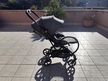 Passeggino leggero di solo 8,8 kg con dei graffi sul telaio dovuti all' utilizzo nel tempo, con ruote più grandi per tutti i tipi di terreni, seduta girevole a 360 gradi.