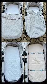 Passeggino: Dalla Nascita fino a 22 kg. Maniglione regolabile in altezza, ruote adatte a tutti i terreni e sospensioni anteriori. Cappottina upf 50+ xxl. Da navicella per i primi tempi si trasforma in passeggino in pochissimi passaggi. Con coprigambe.