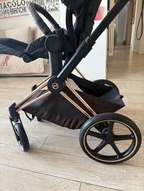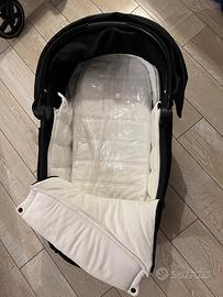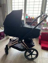 Passeggino cybex con passeggino, navicella, ovetto e base per auto. Passeggino e ovetto sono completamente reclinabili. Tutto perfetto, specifico che il manico in eco pelle del passeggino ha cambiato colore (vedo foto). Completo delle scatole originali, io l’ho acquistato niovo a 1850 euro, Consegna solo di persona a roma.