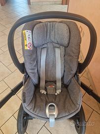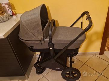 Trio Cybex Platinum Priam 2-in-1 in buone condizioni: include ovetto Cloud Q, base Isofix, parapioggia e borsa/zaino Mustela nuova in regalo. Telaio versatile: si monta navicella o passeggino, risparmiando spazio. Ovetto Cloud Q si può facilmente trasferire sul telaio e si può completamente reclinare, perfetto per neonati che devono stare distesi, con cuscino riduttore incluso. Passeggino con 3 inclinazioni, fronte-mamma o fronte-strada, chiusura compatta del telaio. Ruote grandi, ottimo per città e passeggiate fuori strada; cestino ampio e manico regolabile. Piccoli segni di uso: manico con rivestimento nuovo, cappuccio leggermente scolorito, ovetto qualche graffio. Tutti i tessuti lavati e igienizzati. ⚠️ Ritiro a mano a Pinerolo