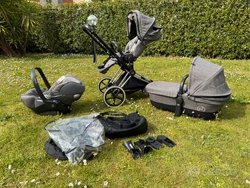 Vendo trio Cybex Priam Platinum completo di: navicella, ovetto cloud che si allunga completo di sua base isofix e seduta passeggino. Consegno anche la borsa originale per il cambio e due coperture antipioggia, tutto originale. Segnalo per trasparenza una targhetta mancante al maniglione, ma è solo un aspetto estetico. Il prezzo ne tiene di conto. Colore grigio New York.