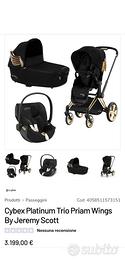 1 Trio Priam Wings By Jeremy Scott composto da base passeggino, navicella, sedile passeggino e seggiolino auto, compresi attacchi