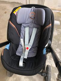 Vendo passeggino trio Cybex in ottimo stato composto da passeggino ripoegabile, ovetto cybex e borsa babybag di color blu.