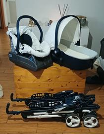 Vendo Trio della Cam completo di navetta ( con materassini e cuscinetto ), ovetto con pedana per l'auto,passeggino e borsa. Come in foto diamo: ombrellino, coperture per la pioggia, una fodera in spugna, cuscini per passeggino, sacca porta oggetti e retina porta oggetti. Il passeggino ha segni di usura ma funziona tutto! completamente sfoderabile e lavabile!